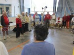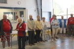 At the opening ceremonies of the Nobelton OSA Doubles, we gathered in a circle, and after an opening prayer by Carl Rogerson, we all sang “O Canada” led by Bev Fowler, and then our tournament director, Marlene Corbeil, reminded us of some of the rules. Then GAME ON with the draw – Bill Brian getting the “lucky court” – he was certainly very enthusiasitc! Yes, who ws that man wearing the “Hot Pants”?
