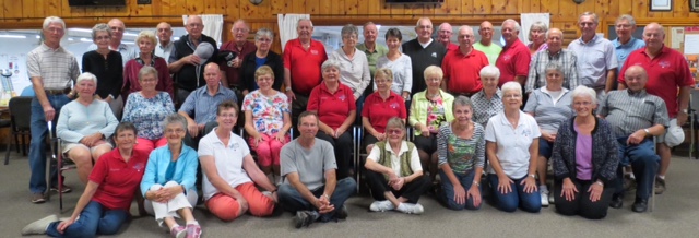 Thursday, September 15th was the final evening for the Centre Wellington Shuffleboard Club. Approximately 45 members attended. The evening began with a club photo taken by Chris Burnett, followed by two free games of shuffle. Then everyone pitched in to roll up the mats, and put them away in storage for the winter. The club owns a trailer to transport and store the mats. Everyone appreciated the assistance of Sean and Kyle Bryan, who pitched in to help the club with the heavier work.
