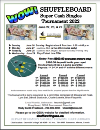 In 2014, Lorraine Pollock , tournament director at the time, approached Marlene, to see if she would take over being a tournament director. She thought since her husband wanted to play in the tournaments, she could be there still involved in the games. Lorraine stepped down and Marlene stepped into the position as tournament director of the OSA and CNSA tournaments from 2015-2021.